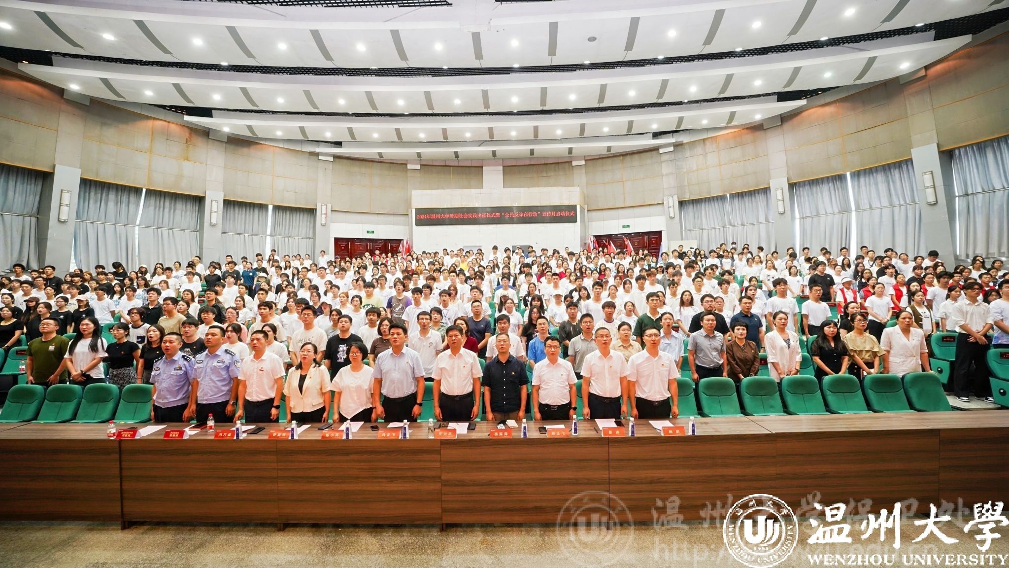 为认真贯彻落实省反诈联席办关于反诈工作的通知要求,进一步加强sunbet申愽反诈宣传力度,切实增强师生的反诈防骗意识和能力,积极营造全民反诈在行动的浓厚氛围。7月6日下午,sunbet申愽成功举办“警惕诈骗新手法,不做电诈工具人”为主题的“全民反诈在行动”集中宣传月启动仪式活动。校党委副书记庄兴忠出席活动,辖区茶山派出所教导员张朝晖、温州市反诈中心警官刘昱洲、各相关部门负责人和学院副书记、辅导员、以及来自各学院暑期社会实践队500余人参加活动。