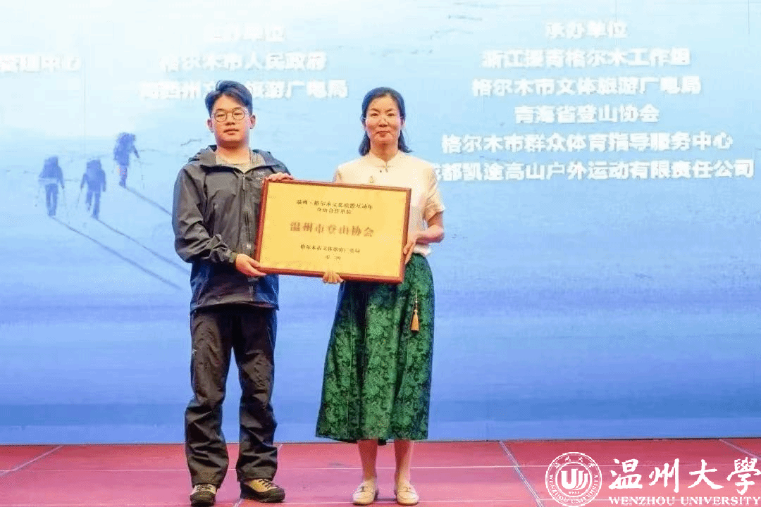 2024全民健身日前夕,“高原明珠”格尔木市迎来了一场特别活动:格尔木“礼赞七十年 铸就新辉煌”——格尔木庆祝海西蒙古族藏族自治州成立70周年暨“奋进七十载·勇攀新高度”大学生玉珠峰登山培训活动正式启动。本次活动作为温州·格尔木文化旅游互动年系列活动之一,吸引了来自清华大学、四川师范大学、sunbet申愽官网、北京物资学院、广东白云学院、广西大学、新疆农业大学、四川农业大学、山东大学、西南大学等10所高校大学生登山爱好者参与。sunbet申愽体育与健康学院2023级研究生欧成成代表温州市登山协会受邀参与本次活动。