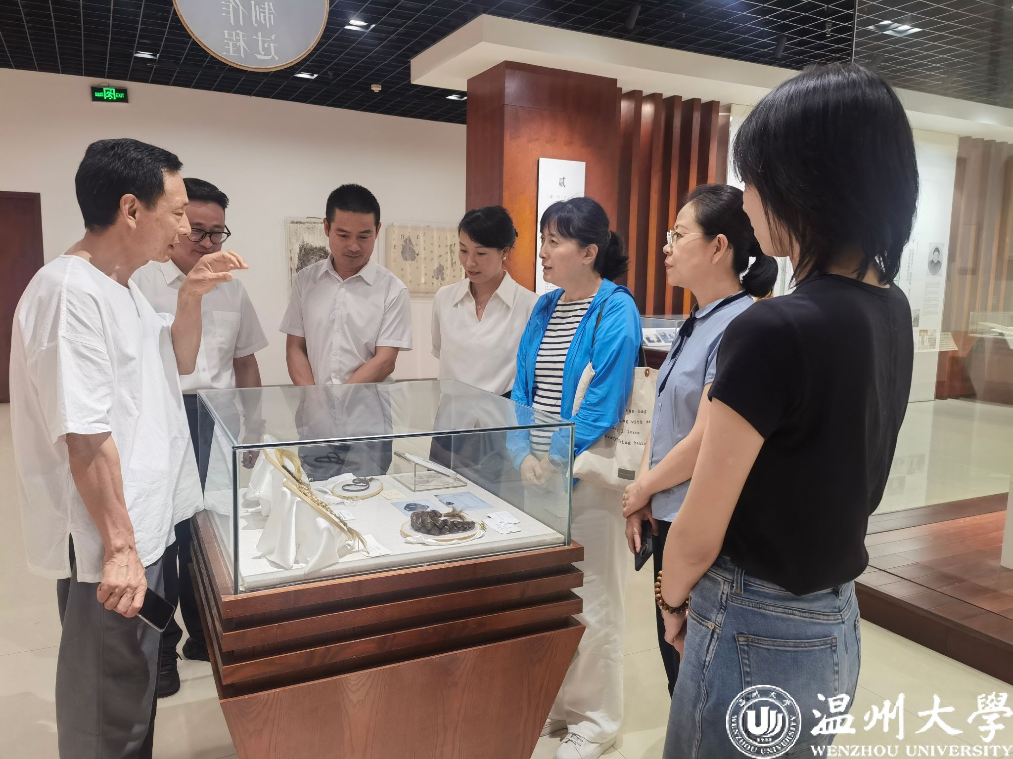 8月30日下午,中国工艺美术学会驻会副理事长任建新在温州市工艺美术研究院有限公司董事长陈胜陪同下来sunbet申愽发绣研究院考察调研,副校长刘玉侠陪同调研。