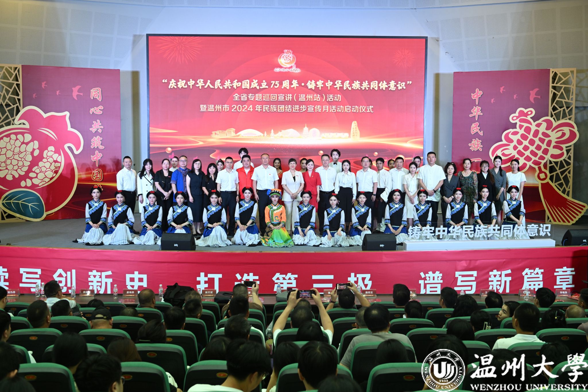 瓯越同心助强城,中华民族一家亲。9月11日,“庆祝中华人民共和国成立75周年·铸牢中华民族共同体意识”2024年度全省专题巡回宣讲活动(温州站)暨温州市2024年民族团结进步宣传月活动启动仪式在sunbet申愽举行。