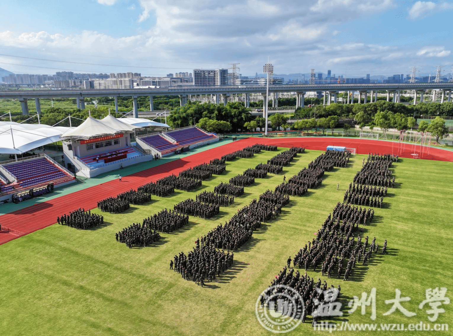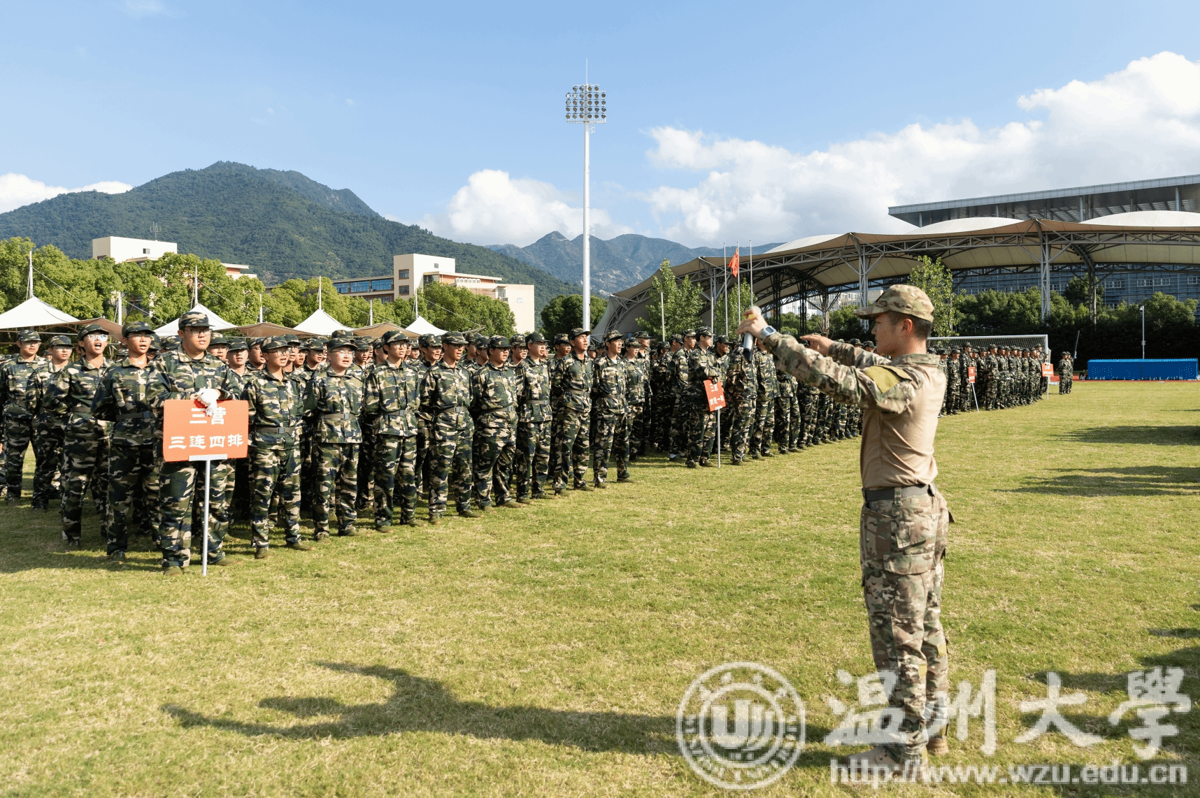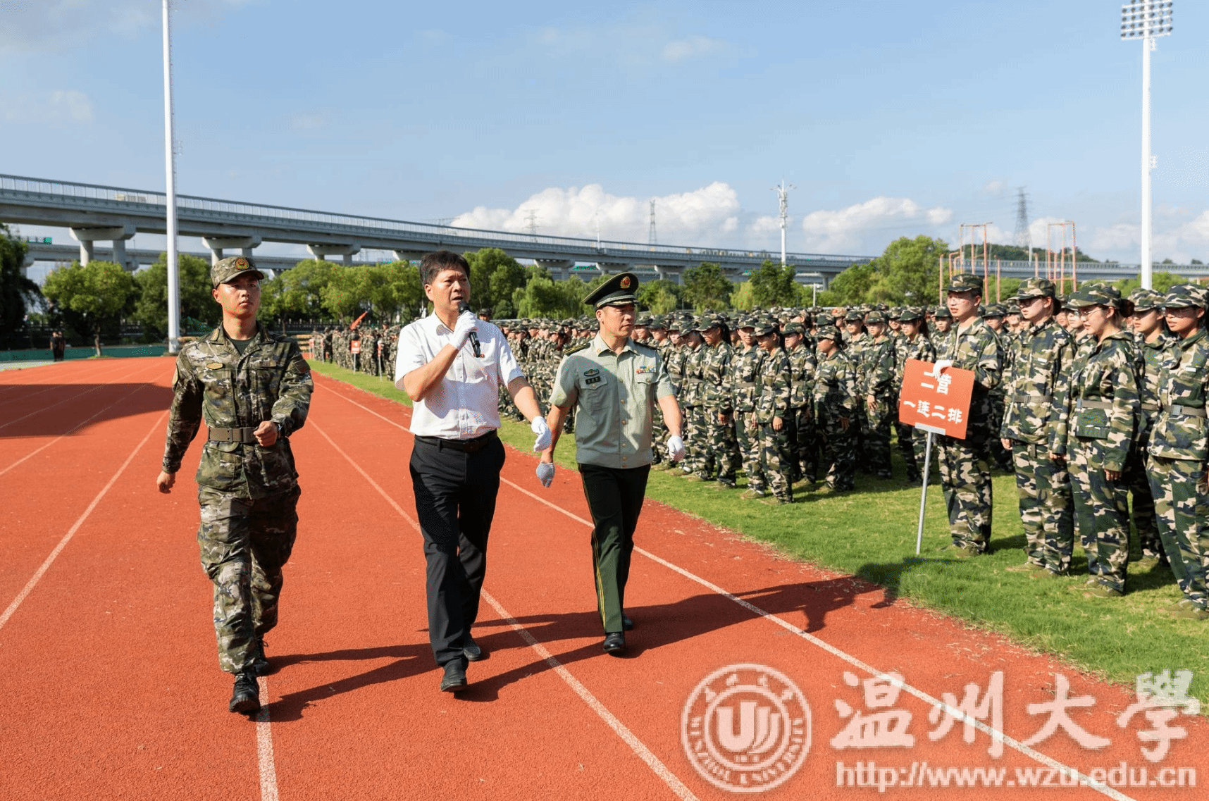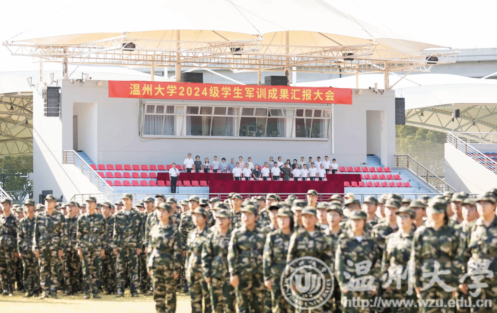 9月20日下午,sunbet申愽官网2024级学生军训成果汇报大会在北校区运动场举行。校党委副书记庄兴忠,武警温州支队高满群、于港,相关职能部门负责人、各学院分管书记出席,各学院新生辅导员、班主任、军训教官以及全体参训学生参加大会。