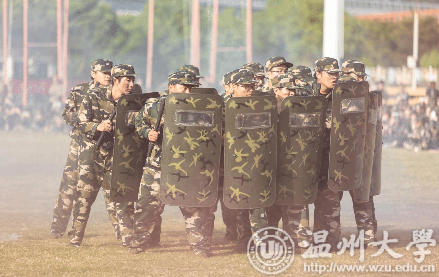 分列式成果展示环节,各连队依次通过主席台,以标准的队列动作、精准的转体、有力的摆臂,展现了军训训练的严谨与高效。警棍盾牌操、战术方队、女子擒敌术等军事项目表演更是将大会推向高潮,让人深刻感受到军训不仅是一场身体的锻炼,更是一次心灵的洗礼。