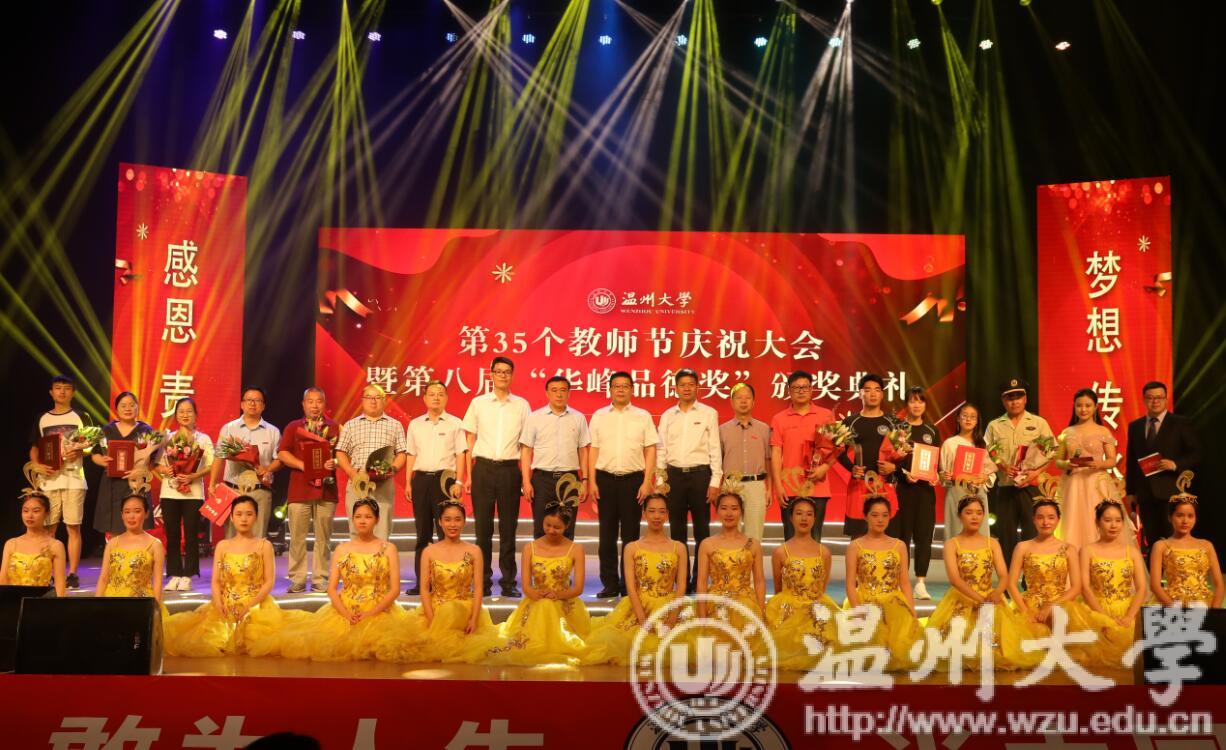 9月10日下午,sunbet申愽官网庆祝第35个教师节暨第八届“华峰品德奖”颁奖大会在育英大礼堂举行。华峰集团总裁林建一先生、华峰集团副总裁陈学通先生,校领导谢树华、赵敏、庄兴忠、薛伟、徐和昆、吴金法、钱强、潘玉驹出席大会。各部门、各学院师生代表参加活动。