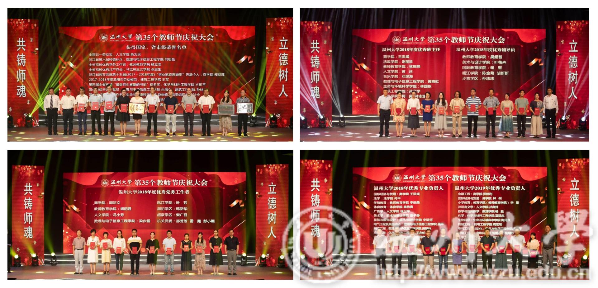 大会隆重表彰了一批各级各类先进个人、先进集体,包括2019年获得市级以上荣誉称号的老师、2018年度校级优秀教育教师(教育工作者)、优秀班主任、优秀辅导员、优秀共产党员、优秀党务工作者、优秀专业负责人及获得“步青教学卓越奖”的教师等。还有58位老师工作至今已整整30年,他们把一生的爱与心血、责任与青春都倾注在了教育事业。在这个特别的日子里,学校把掌声与鲜花献给他们,感谢他们的辛勤付出,感谢他们为学校发展作出的卓越贡献。