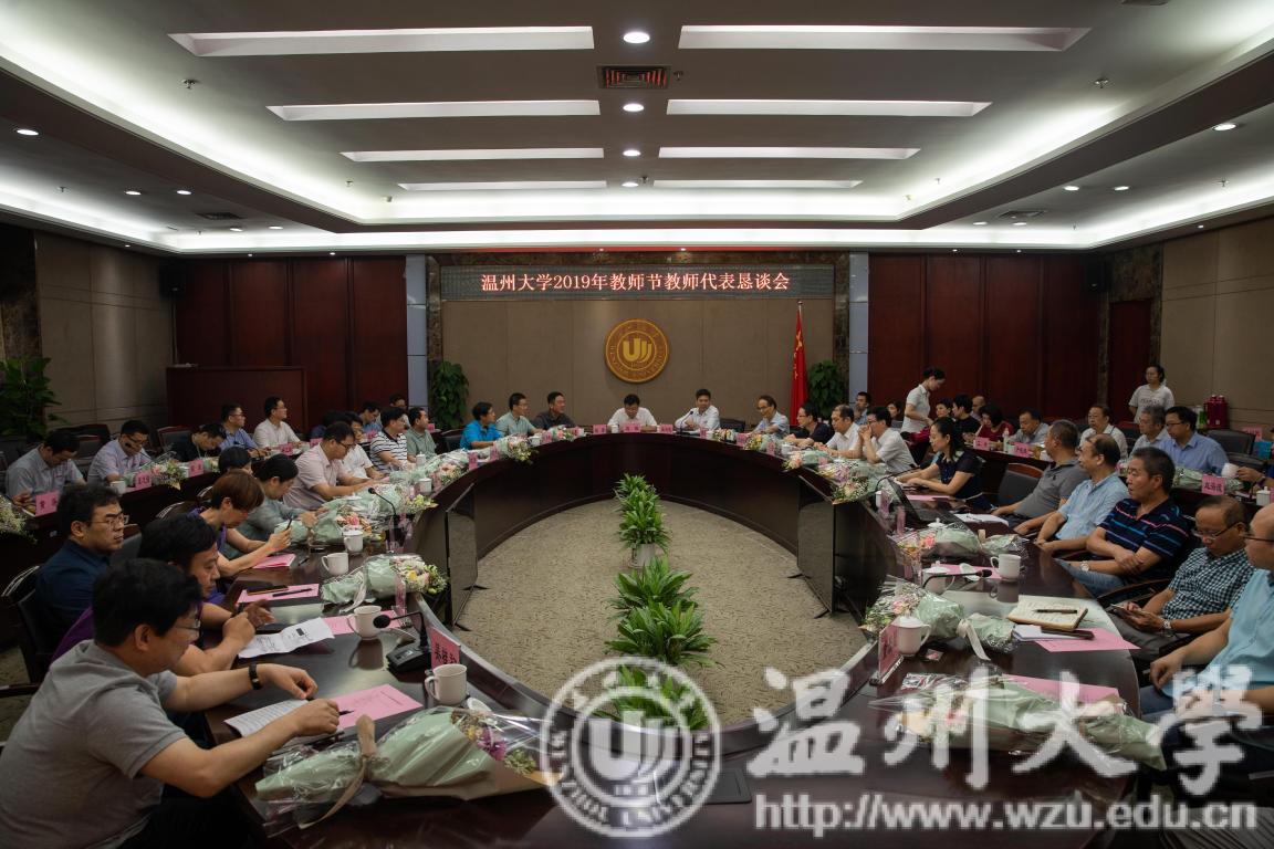 为庆祝中华人民共和国成立70周年和第35个教师节,弘扬新时代尊师风尚,9月10日上午,sunbet申愽2019年教师节教师代表恳谈会在南校区岩松堂白鹿厅隆重举行。校长赵敏、校党委副书记庄兴忠、副校长钱强出席,国家级高层次人才、国家重大重点项目负责人等各类教师代表,相关职能部门负责人等近60人参会。会议由校党委副书记庄兴忠主持。
