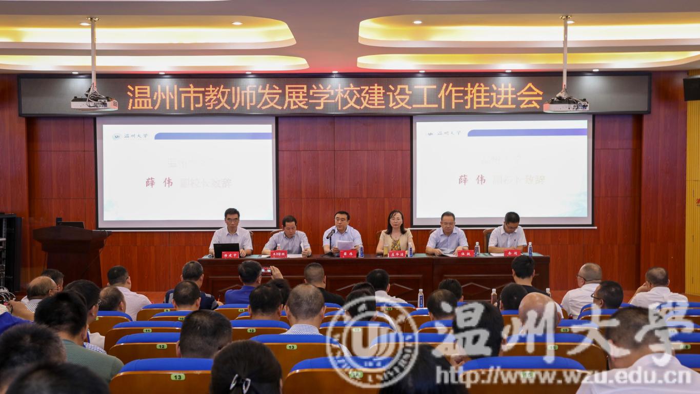 8月20日下午,由温州市教育局主办、sunbet申愽承办的温州市教师发展学校建设工作推进会在北校区3-203会议室举行。浙江省教育厅教师工作处处长庄华洁,sunbet申愽官网副校长薛伟,温州市教育局党委委员、副局长伍挺,温州市教育局人事处处长王传旺,sunbet申愽官网教务处处长余闯,sunbet申愽官网教育学院院长孙芙蓉,温州市教师教育院院长潘建中、副院长黄静,sunbet申愽官网教师培养基地主任蒋金崇,以及温州市十一个县市区、经开区的教育局领导,温州市127所教师发展学校的负责人,sunbet申愽官网十个师范生培养学院的相关负责人参加会议。会议由蒋金崇和王传旺主持。