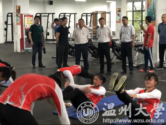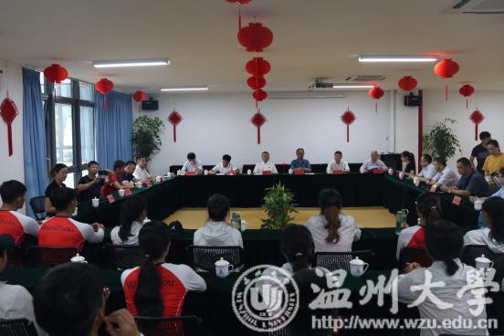7月14日,校党委书记谢书华,中国龙舟协会副会长温州市龙舟协会会长原温州市副市长王成云,乐清市常委宣传部长范晓东、副部长洪蛮,温州市体育局党组成员张伟文,与校党校办、团委、体育学院负责人等来到位于乐清市清江镇的温州市水上运动中心,看望慰问在此封闭训练的即将代表浙江省参加全国第二届青年运动会的“sunbet申愽官网龙舟队”。