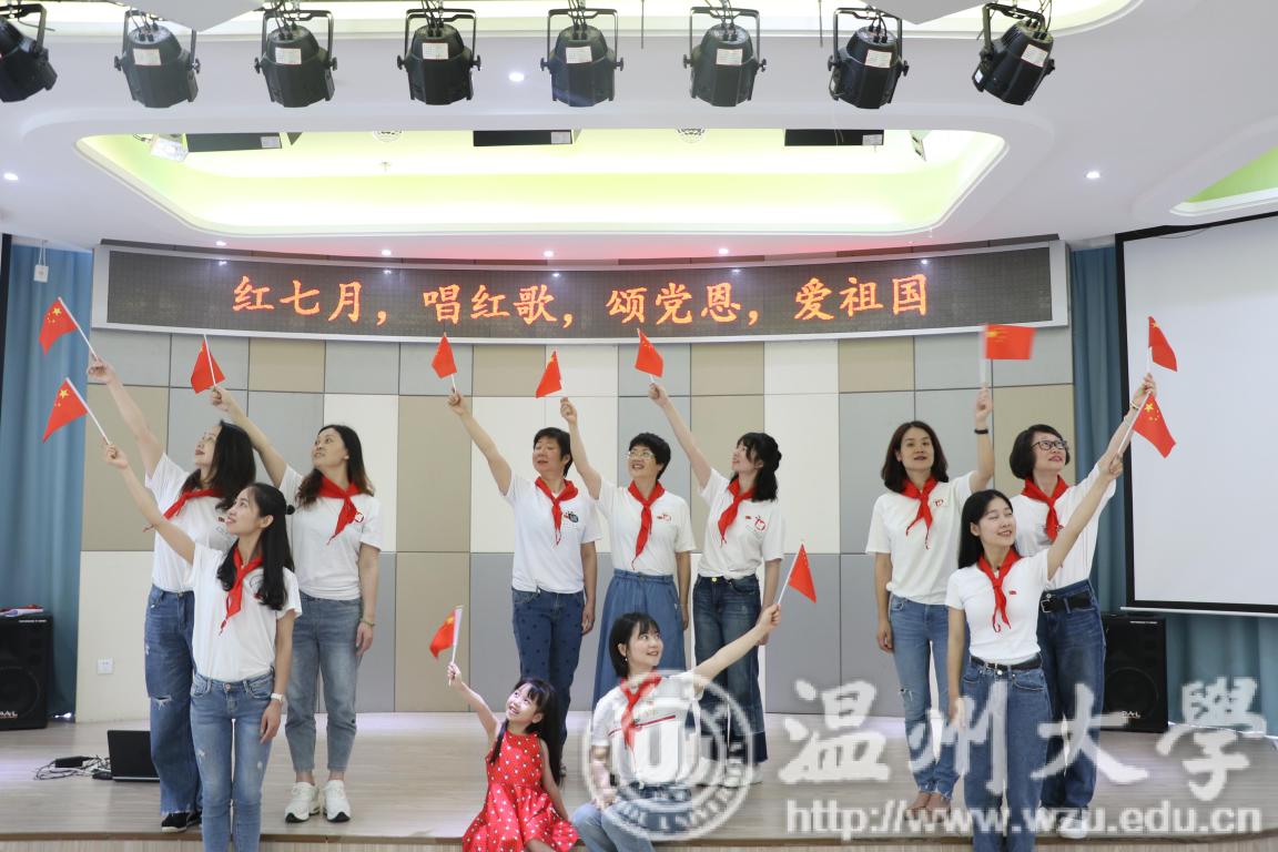 教师教育学院的学前教育专业的学生党员和附属实验幼儿园三所园区的教师党员们共同唱响红歌。用红歌旋律涵养初心信念,提升党性修养,以实际行动认真践行社会主义核心价值观,唱响时代最强音。