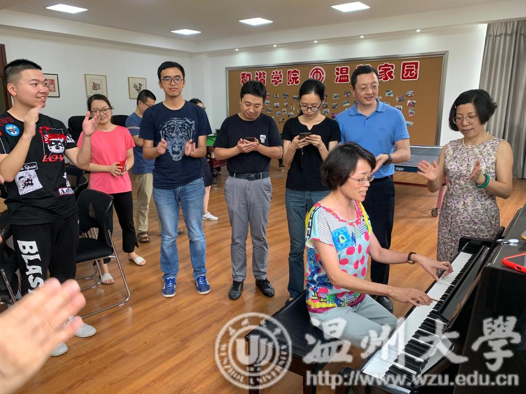 国际教育学院党总支举行座谈会,党员分享入党故事。党总支书记林爱菊向党员赠送最新版党章,全体教工党员共唱《党啊,亲爱的妈妈》。