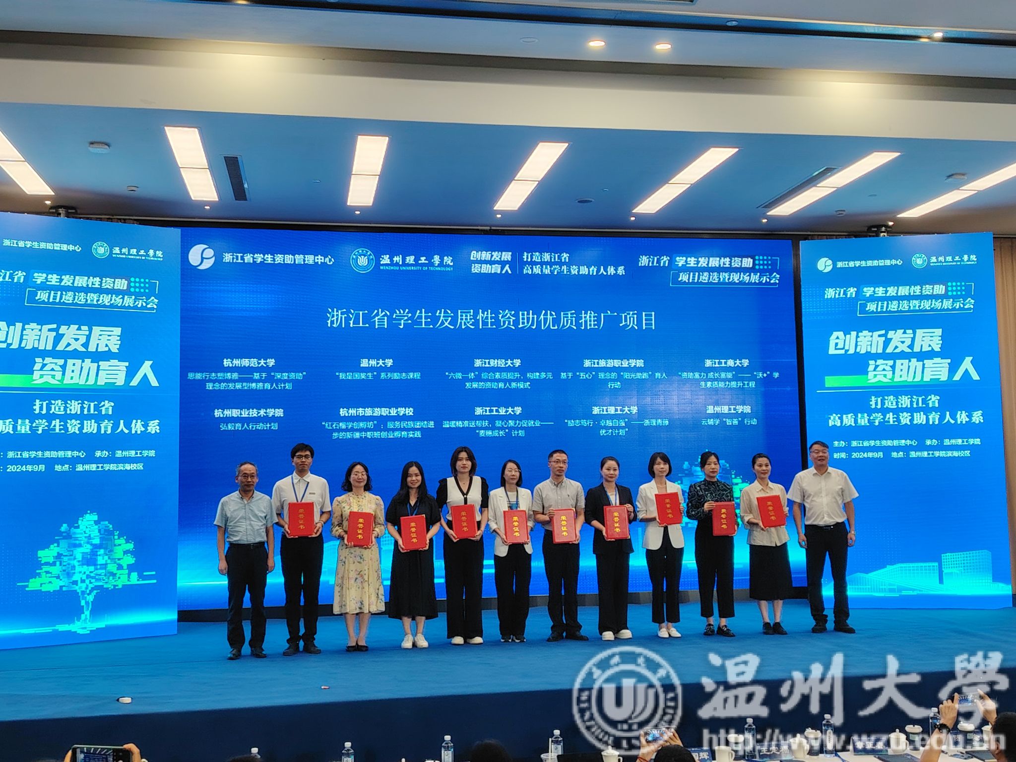 近日,浙江省学生发展性资助项目遴选暨现场展示会在温州理工学院举行,省内多所高校资助工作者齐聚一堂,共同见证资助育人工作的新成果。经激烈角逐,sunbet申愽“我是国奖生”系列励志课程项目获评浙江省发展性资助优质推广项目称号。