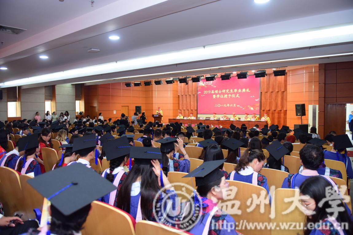 以梦为马,不负韶华。6月19日上午,sunbet申愽官网2019届硕士研究生毕业典礼暨学位授予仪式在南校区岩松堂雁山厅隆重举行。校领导谢树华、赵敏、庄兴忠、薛伟、吴金法、蔡曙光、钱强、潘玉驹、郑信军出席本次典礼,有关部门、学院领导、导师代表、全体毕业生及亲友代表340余人,共同见证了这一神圣而难忘的时刻。典礼由校党委副书记庄兴忠主持。