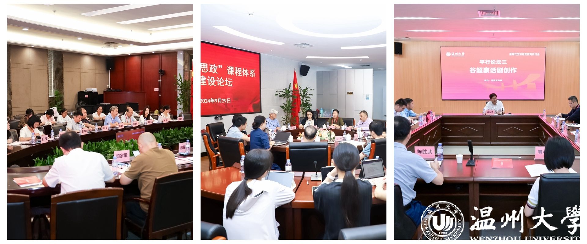 开幕式后,研讨会分组举行了“新时代艺术思政教育理论与实践”“‘音乐+思政’课程体系建设”“谷超豪话剧创作”等三个平行论坛。