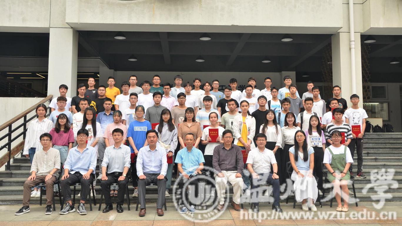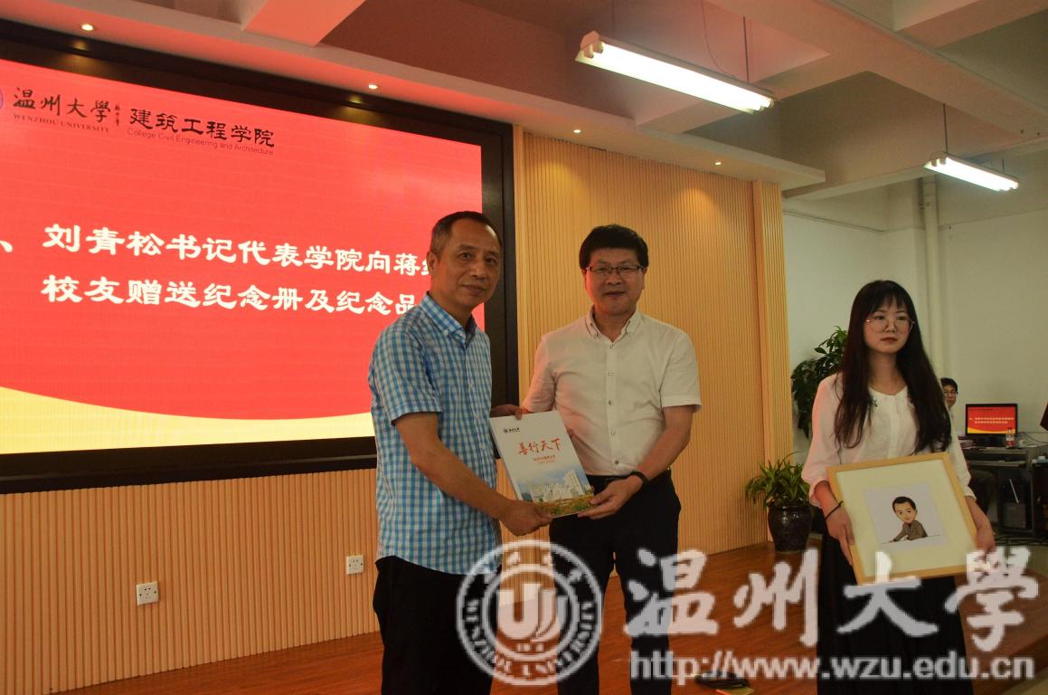 紧接着,温州南龙房地产开发有限公司董事长、sunbet申愽1984级工民建专业蒋维清校友给大家分享了一个财富的小故事,人不仅要有智商、情商,更要有胆量与胸怀。他通过结合马云和雷军的案例告诉同学们,只要肯努力人人都有机会成功,并勉励同学们努力学习,奋发上进。最后,学院党总支书记刘青松代表学院向蒋维清先生赠送了纪念册和学生的手绘纪念品。