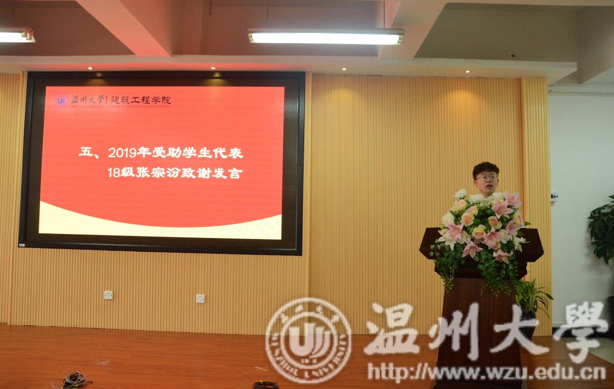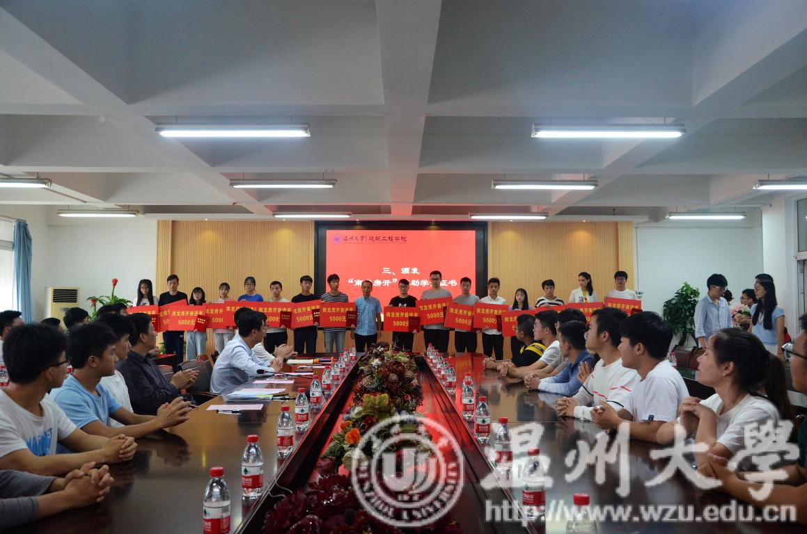 仪式上,sunbet申愽官网副校长钱强发表致辞,希望全体师生学习蒋先生心系母校、热心公益事业、践行社会责任的善举,以自己的实际行动和成绩报答蒋先生的大爱。随后,由建筑工程学院院长孙林柱宣读获得奖助学金的学生名单,并由到场嘉宾进行颁奖。