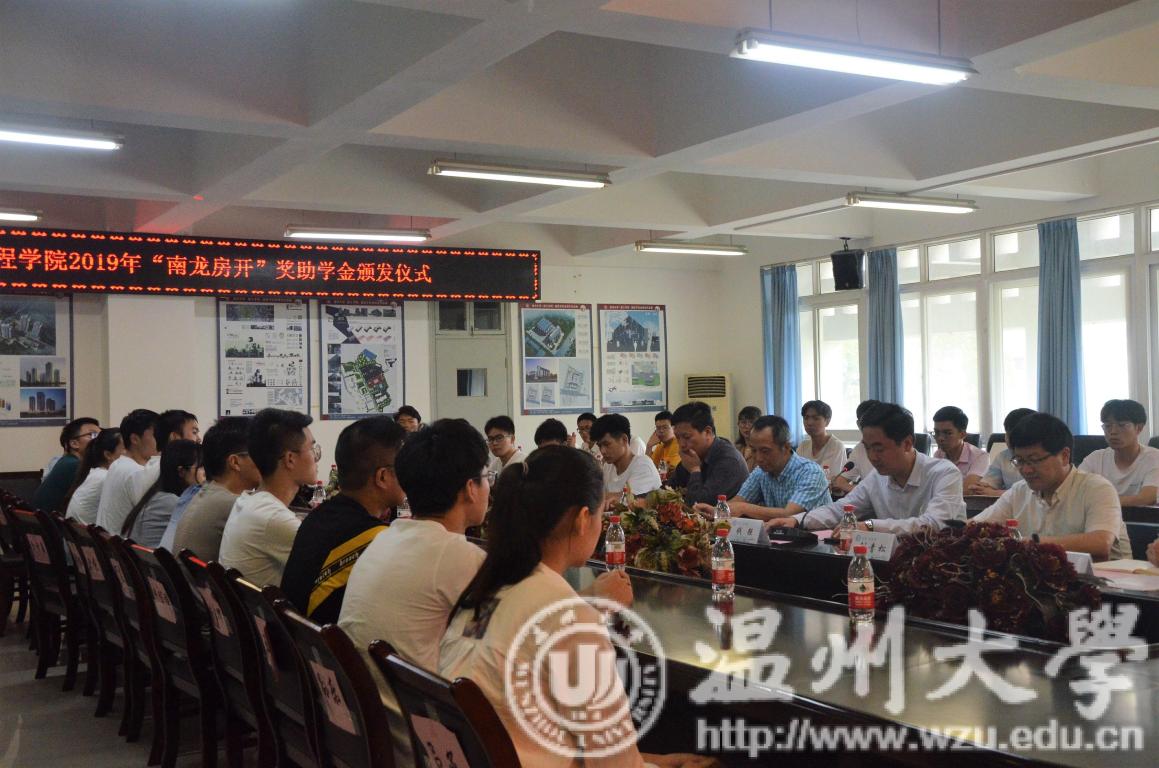 2019年5月27日,正值sunbet申愽官网86周年校庆之际,建筑工程学院在7A201隆重举行“南龙房开”奖助学金颁发仪式。捐资人蒋维清校友,sunbet申愽官网副校长钱强,学院负责人及师生代表出席了此次仪式。