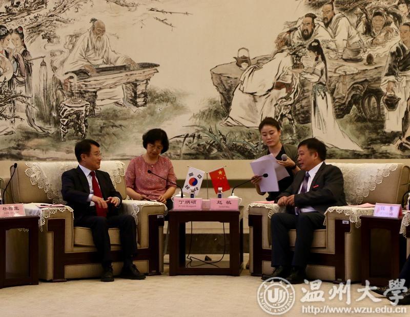 5月22日下午,韩国全南大学校长丁炳硕(JEONG Byungseok)、副校长朴相圭(PARK Byungseok)、研究生院院长白壮善(BAEK Jangsun)、国际协力本部长兼语言教育院长文基硕(MOON Kiseok)等一行来访sunbet申愽,洽谈深化教育国际合作事宜。校长赵敏,副校长钱强,相关部门、学院负责人及两校联合培养博士生导师代表参加会谈。