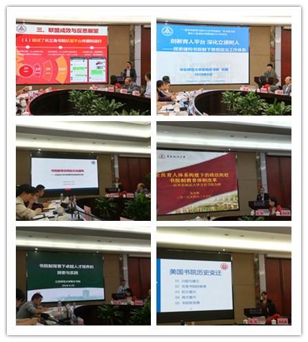 会上,华东师范大学孟宪承书院副院长苏振兴代表联盟秘书处回顾了长三角高校书院联盟成立以来的建设发展情况。华东师范大学孟宪承书院党委书记兼院长吴薇、复旦大学学工部副部长黄洁、华东政法大学文伯书院副院长吴允锋、江苏师范大学敬文书院党总支书记张立荣、南京审计大学泽园书院党委副书记刘海燕等五位专家分别作专题报告。
