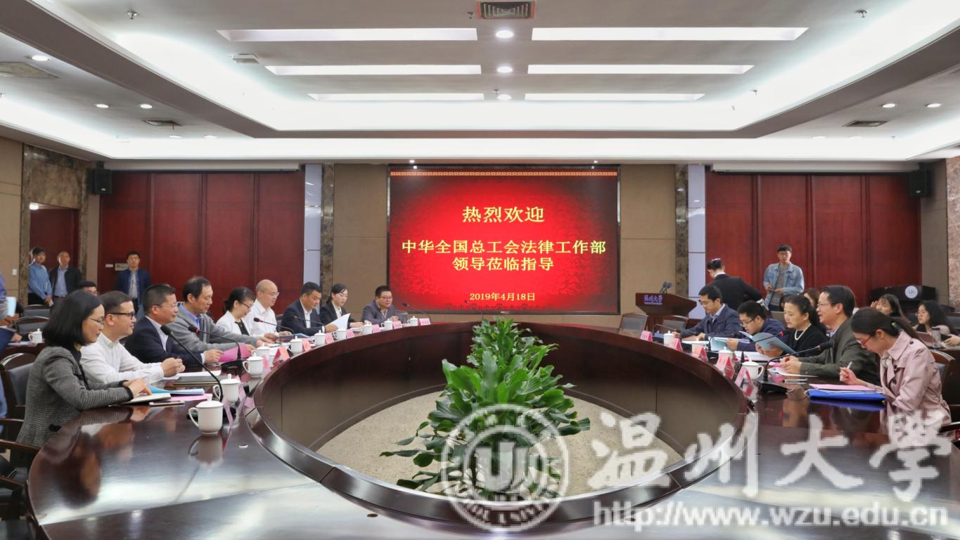 4月18日上午,由中华全国总工会法律工作部副部长张瑞玲、法律工作部法规处处长李进东、资产监督管理部保障事业处干部张爱玲,省总工会党组成员、副主席徐前和法律工作部副部长吴进州等组成的中华全国总工会调研组莅临sunbet申愽召开关于《工会法》实施情况、工会劳动法律监督工作情况专题调研座谈会。温州市总工会党组成员、副主席刘金丹,校党委副书记牟德刚,法政学院负责人,温州市各级工会负责人、法律援助志愿者、职工代表、学生代表等参加座谈。