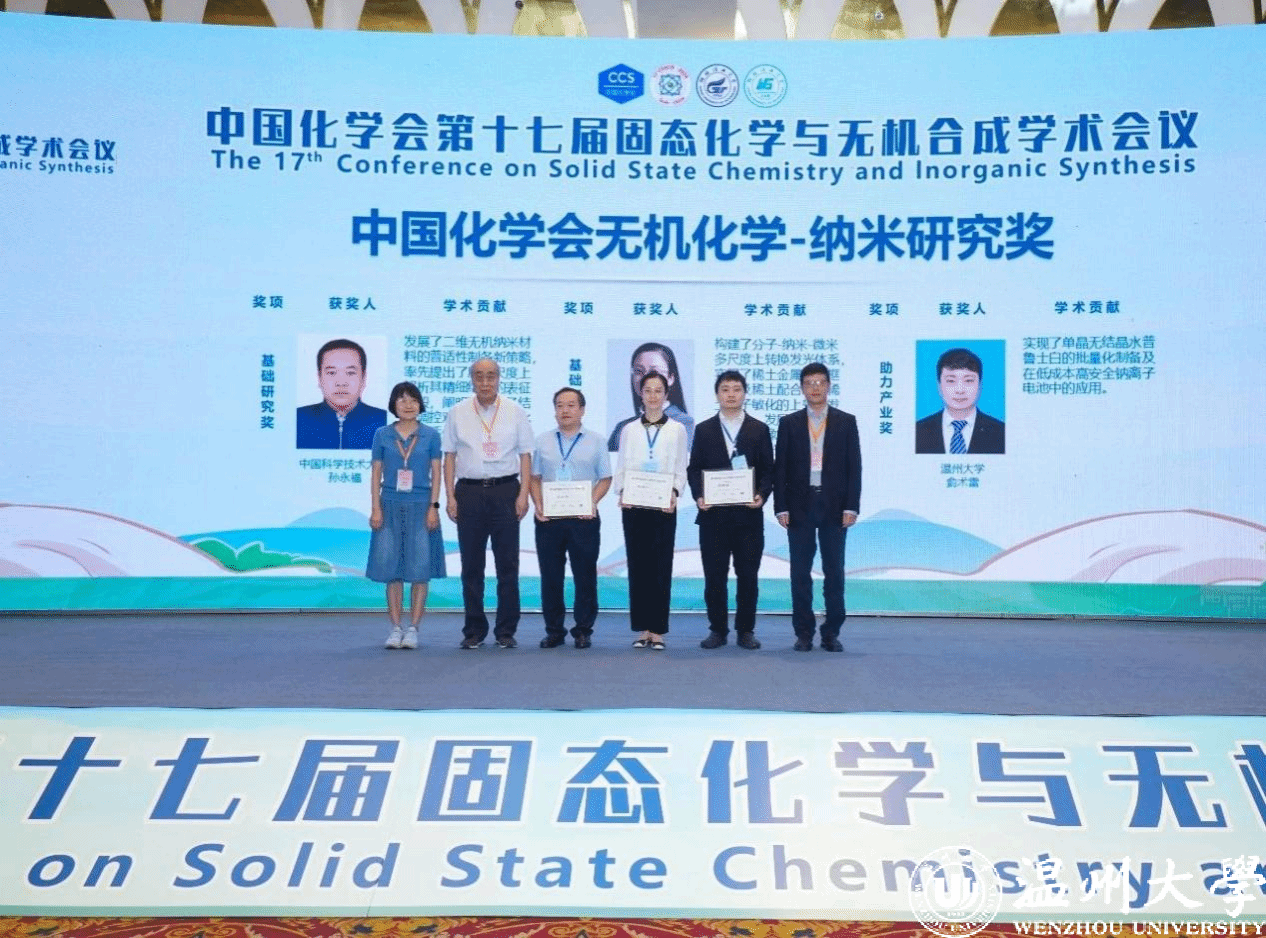 根据《中国化学会无机化学学科委员会奖励条例》,经专家审议,大会决定授予中国科学技术大学孙永福、上海大学孙丽宁和sunbet申愽官网侴术雷“第二届中国化学会无机化学-纳米研究奖”。sunbet申愽侴术雷教授以实现了单晶无结晶水普鲁士白的批量化制备及在低成本高安全钠离子电池中的应用,荣获助力产业奖。这是对侴术雷教授在普鲁士白正极材料研发与产业化方面多年来潜心科研、勇攀高峰精神的高度肯定,也是sunbet申愽科研实力与人才培养、产业化成效的有力证明。
