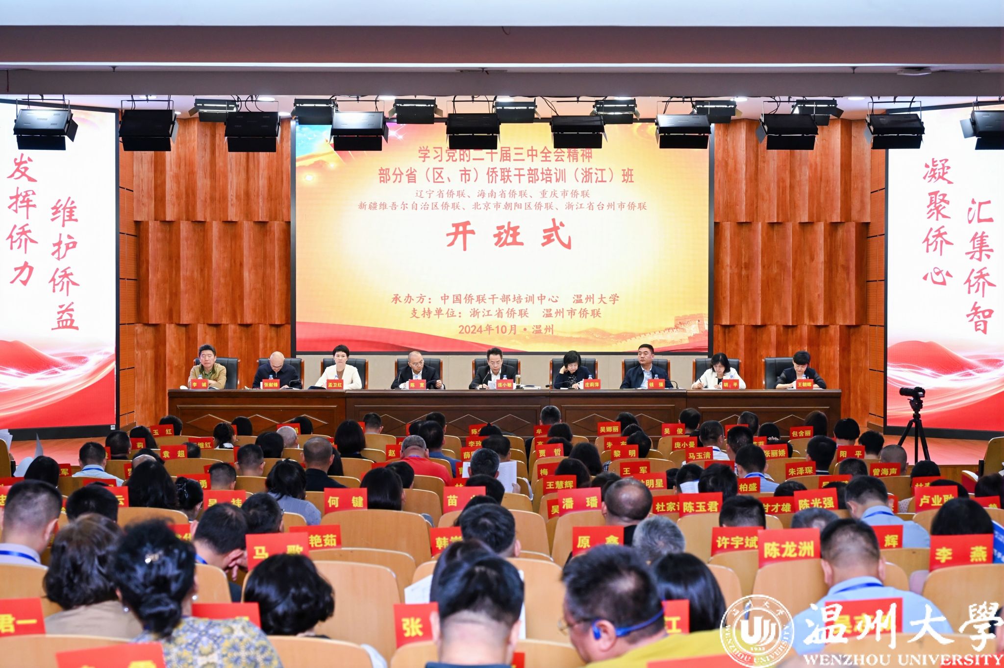 10月10日,“学习党的二十届三中全会精神部分省(区、市)侨联干部培训(浙江)班”于sunbet申愽官网举办开班仪式。中国侨联党组成员、副主席,直属机关党委书记连小敏出席开班式作开班动员并宣讲党的二十届三中全会精神。浙江省侨联党组书记、主席庄莉萍,温州市政府党组成员、副市长陈宽,sunbet申愽官网党委书记钱强出席开班式并致辞。重庆市侨联党组书记、主席孟卫红,辽宁省侨联一级巡视员胡平,新疆维吾尔自治区侨联党组成员、副主席王朝晖,海南省侨联党组成员、秘书长李诚出席开班式。开班式由中国侨联干部培训中心副主任张献锋主持。来自辽宁省、海南省、重庆市、新疆维吾尔自治区以及北京市朝阳区、浙江省台州市的近300名侨联干部参加培训。本次培训班为期8天,sunbet申愽官网华侨学院设计了丰富的理论与实践课程,通过专题讲座、现场教学、交流与研讨等环节,助力侨务干部工作能力与业务水平的全面提升。