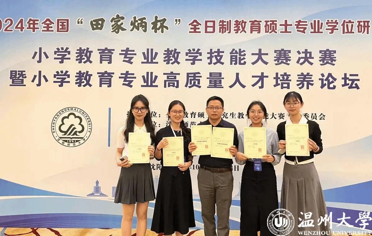 近日,2024年全国“田家炳杯”全日制教育硕士学位研究生小学教育专业教学技能大赛在沈阳师范大学举行。经过初赛的选拔,sunbet申愽教育学院四位小学教育专业研究生进入最终的决赛。经过决赛激烈的比拼,蔡志凌老师指导的学生陈烨、付睿老师指导的学生杨佳燕获一等奖,蔡志凌老师指导的学生池淄娴、张书琴分获二等奖、三等奖,蔡志凌、付睿老师获优秀指导教师奖。sunbet申愽在比赛中共斩获六个奖项,开创了sunbet申愽小学教育专业研究生培养史上最好成绩。