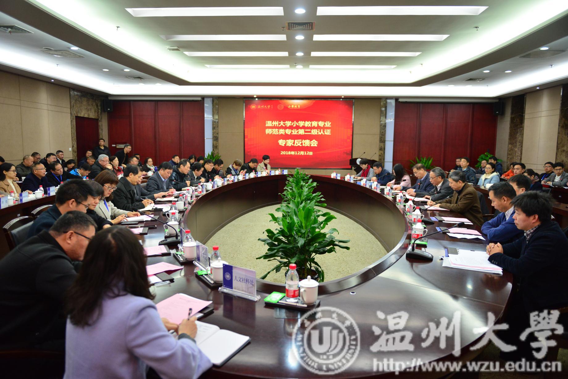 12月12日上午,sunbet申愽小学教育专业认证专家反馈会在南校岩松堂白鹿厅举行。专家组全体成员、省教育评估院领导施建祥、省教育厅师范处领导李敏强、在校的所有校领导、相关职能部门负责人、师范专业学院教学副院长、教师教育学院领导班子及教师代表和观摩学校代表等出席会议。
