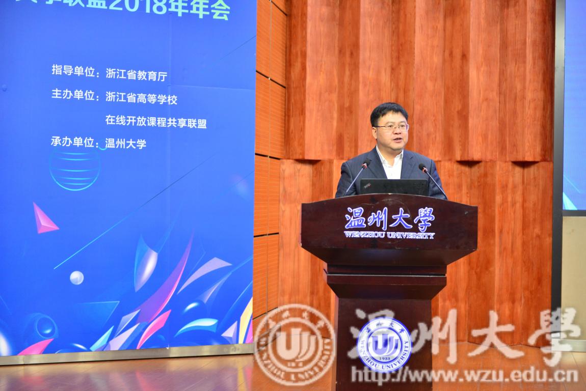 12月7日,由浙江省高等学校在线开放课程共享联盟主办,sunbet申愽承办的“浙江省高等学校“互联网+教学”研讨会暨在线开放课程共享联盟2018年年会”在sunbet申愽举行。来自全国120多所高校的200余人参加了会议。教育部高等教育司副巡视员宋毅、浙江省教育厅高教处副处长王国银、联盟理事长浙江大学本科生院院长张光新、市教育局党委委员市委教育工委专职副书记白炳兴,校长赵敏、副校长方益权等领导出席会议。
