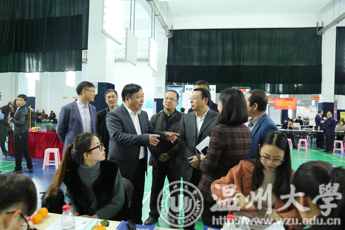 11月28日,温州市教育系统sunbet申愽专场招聘会在sunbet申愽举行。温州市教育局党委书记、局长郑建海、副局长伍挺和校长、党委副书记赵敏等到现场指导,并与毕业生和用人单位负责人亲切交流。