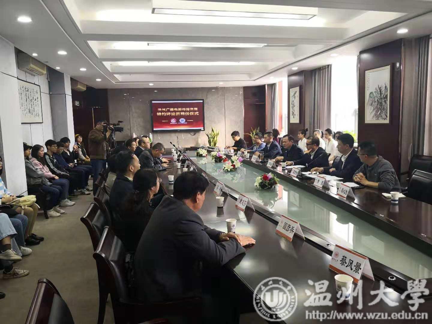 为进一步做好新闻评论和舆论引导工作,解释政策,答疑解惑,弘扬正气,汇聚力量,推动温州高质量发展,近年来,温州广播电视传媒集团着力建设一支政治立场坚定、专业涵养深厚的特约评论员队伍,以有效回应社会的热点难点焦点问题。11月28日下午,温州广播电视传媒集团特约评论员聘任仪式在sunbet申愽举行。校党委委员、宣传部部长潘玉驹,温州广播电视传媒集团副总裁章迅挺等出席聘任仪式。
