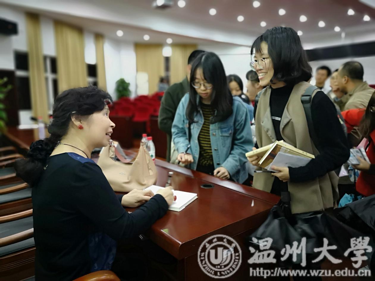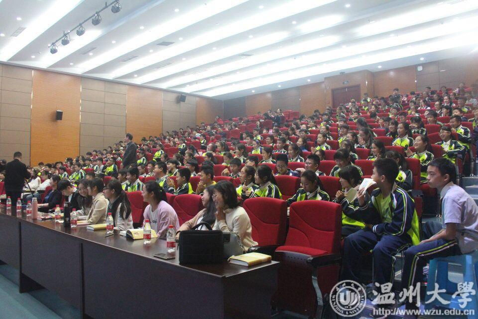 潘向黎谈到了她和古诗的结缘,用生动的故事带领大家领略诗歌之美。同时指出了诗歌考试和鉴赏诗歌的区别。瓯海区社科联主席王玮康及张翎、孙良好也纷纷寄语同学们开阔阅读视野,真正喜欢上阅读,在阅读中找到自己,听到自己内心的声音。
