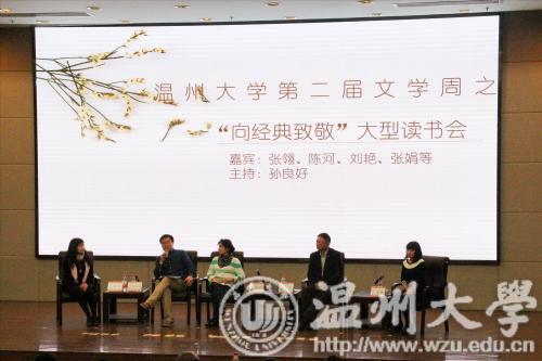 中国人信奉经典,对待书和茶都是这般。15日晚6时30分,“向经典致敬”大型读书会于育英图书馆学术报告厅举行。本次活动由人文学院院长孙良好主持,张翎、陈河、刘艳、张娟、王手应邀参加。