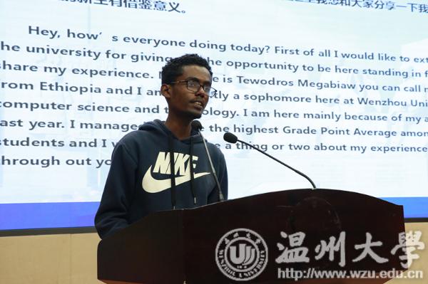 来自埃塞俄比亚的2017级国际本科生老生代表MEGABIAW分享了自己的求学经历,建议新生要有良好的时间规划,走出自己的“舒适区”,融入中国这个新家庭。来自意大利的2018级国际研究生新生代表VIVIANA用流利的中文发表了演讲,发音标准,赢得全场热烈的掌声。她表示,自己在2017年曾作为交换生来sunbet申愽官网求学,温州的包容和老师们的热情、耐心给了她温暖,为此今年又申请来sunbet申愽留学。