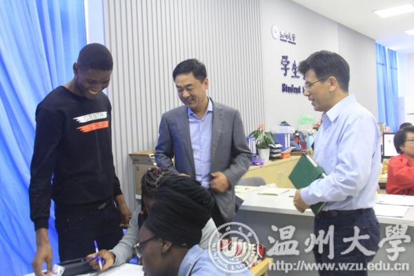10月11日,副校长钱强前往国际教育学院学生事务大厅了解迎新工作进展,并与多位新生亲切交流,询问学生相关信息,鼓励他们尽快适应留学新生活,并对接下来的国际学生工作做了进一步的安排和部署。
