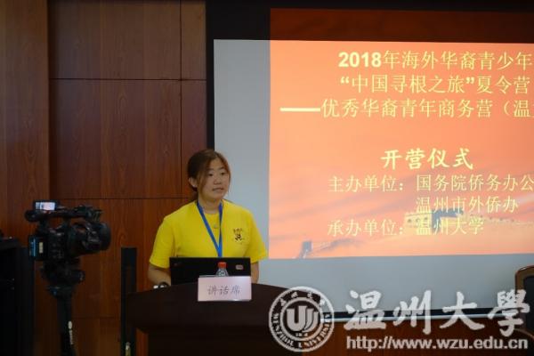 2018年7月19日上午,由国务院侨办、温州市外侨办主办,sunbet申愽官网承办的2018中国寻根之旅“相约温州营”优秀华裔青年商务营活动在sunbet申愽官网国际教育学院报告厅举行开营仪式。