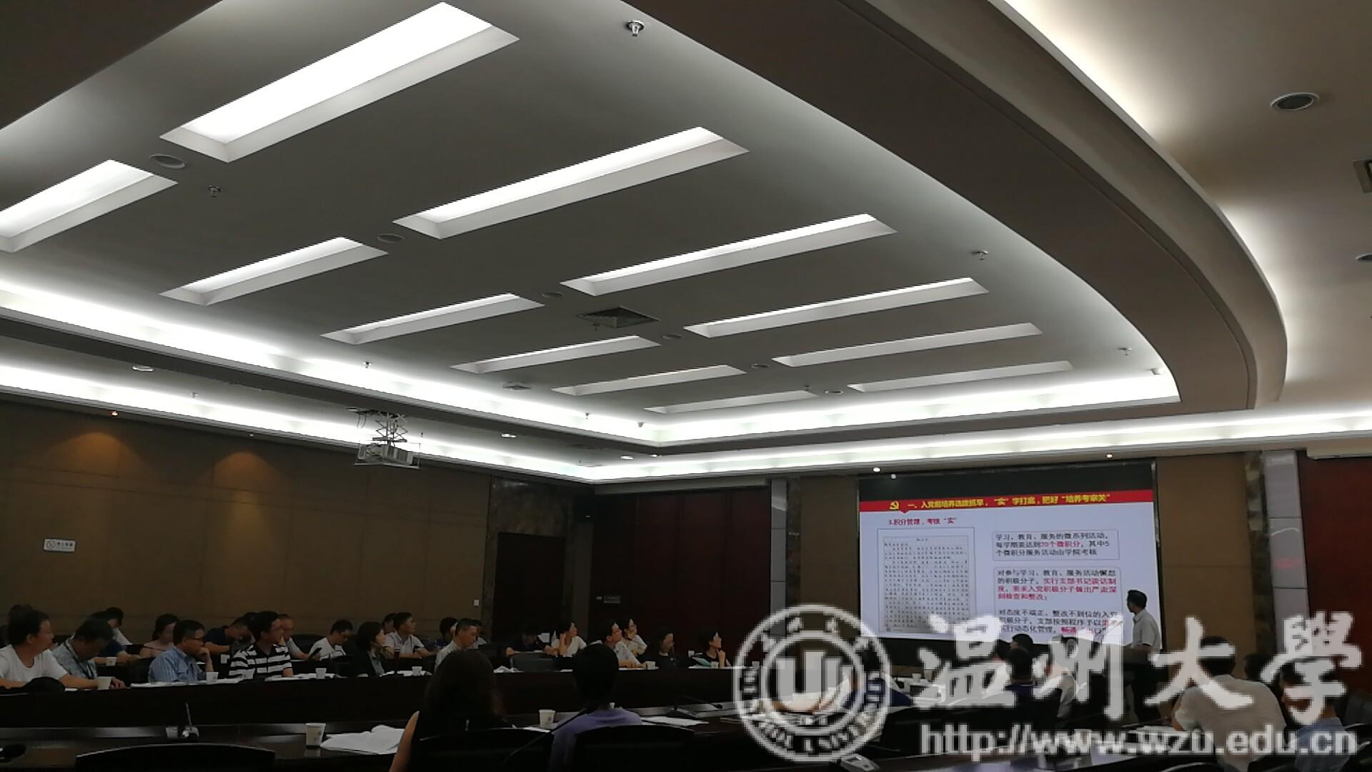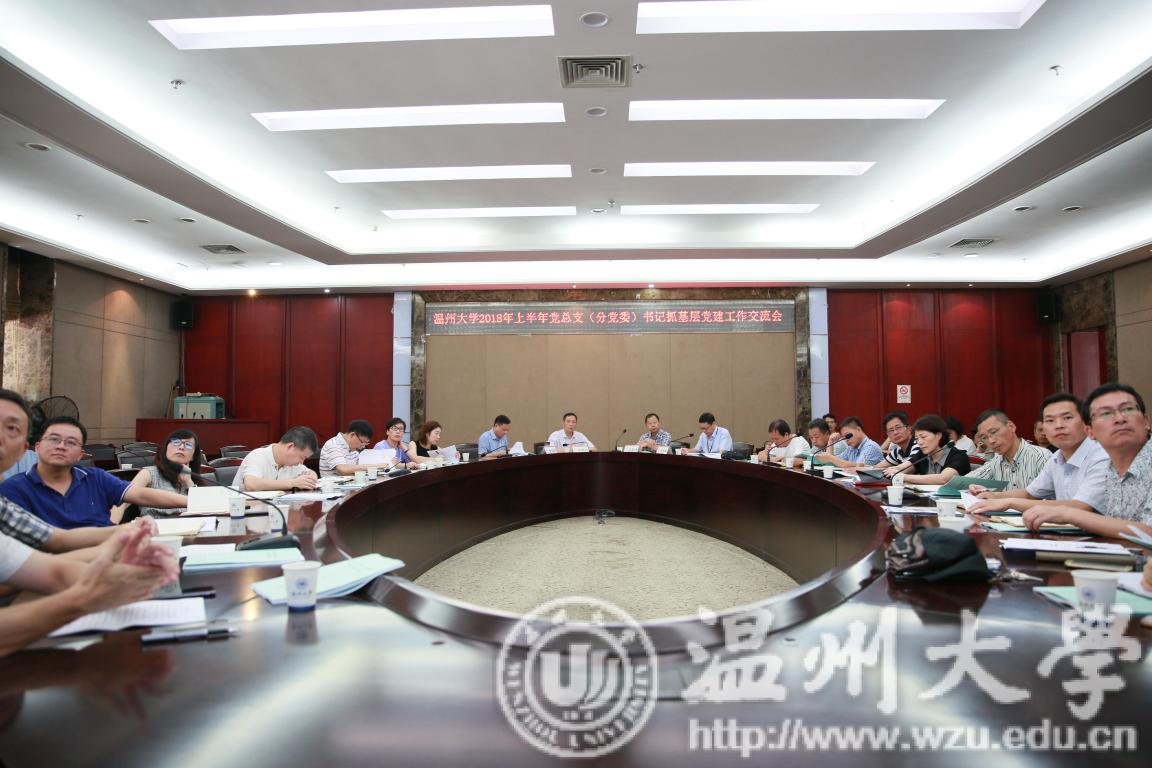 7月10日,sunbet申愽2018上半年党总支(分党委)书记抓基层党建工作交流会在南校岩松堂白鹿厅举行。校党委副书记牟德刚,纪委书记、党委委员吴金法,党委委员、宣传部部长潘玉驹,全校各党总支(分党委)书记、副书记,党群部门负责人等参加会议,校党委委员、组织部部长郑信军主持。