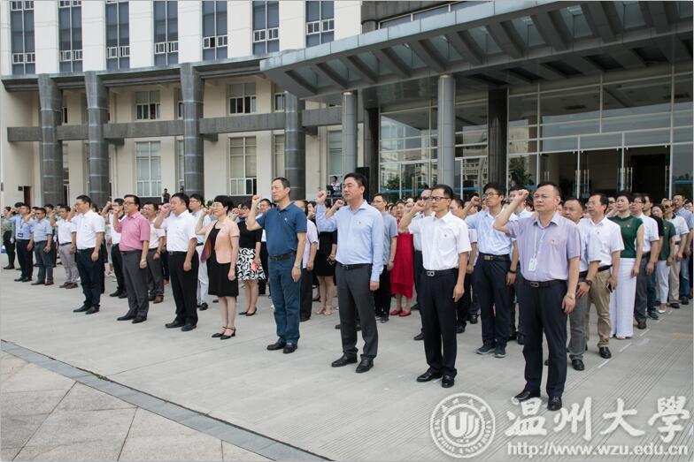 机关党委在南校区国旗广场举行“国旗下重温入党誓词”活动,机关党委200余名党员参加。全体党员满怀激情,高唱国歌,行注目礼,五星红旗在庄严的国歌声中冉冉升起。面向党旗,全体党员紧握右拳,重温入党誓词,重忆入党经历,重问入党初心。“在鲜艳的五星红旗下庆祝党的生日,既是要发扬党的光荣传统,更是要清醒认识当前的形势和任务,牢记党员肩负的历史责任和使命。全体党员要在群众中树立攻坚克难,勇担重任的良好形象,更好的发挥党员先锋模范作用,永保共产党人的先进性。”机关党委书记戴梅红说。