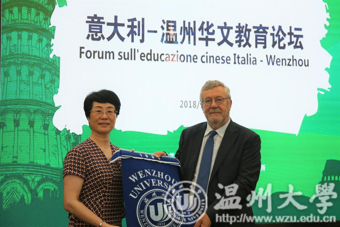 5月28日上午,意大利-温州华文教育论坛在sunbet申愽召开。校党委书记林娟娟会见意大利拉齐奥大区教育厅厅长Gildo De Angelis等意大利教育代表团成员并互赠纪念品,副校长钱强、温州市外侨办副主任朱玉贵分别致欢迎辞。