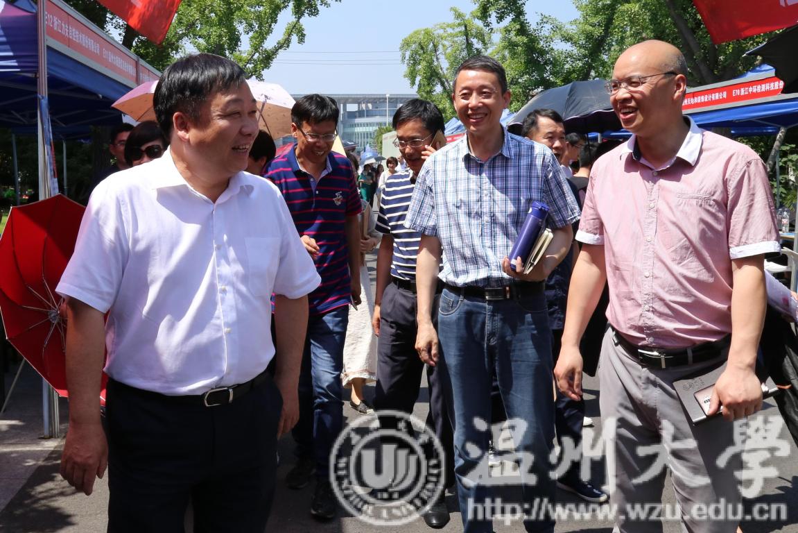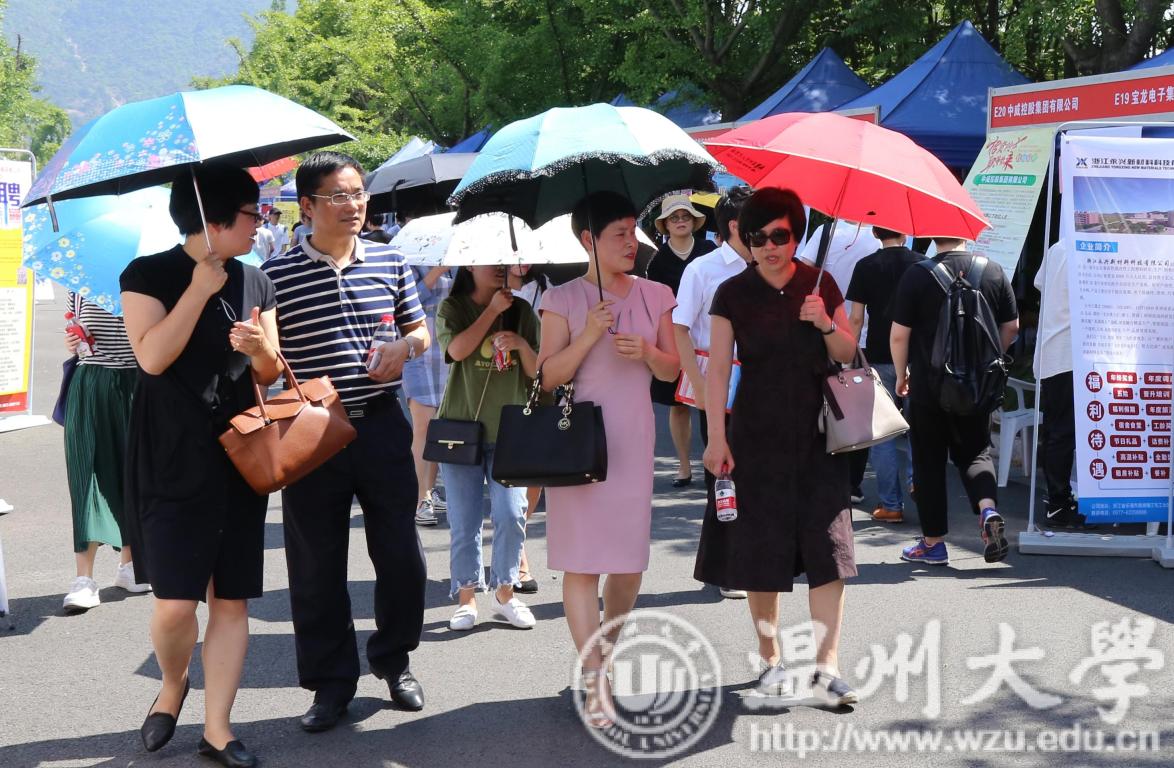 5月16日,sunbet申愽2018届毕业生春季供需洽谈会暨2019届毕业生实习实训招聘会在大学生活动中心举行。校党委副书记赵敏,温州市妇联副主席蔡仁燕、温州市人才管理服务办公室主任季亚斐、瓯海区人力资源和社会保障局副局长姜林海等到现场指导工作。