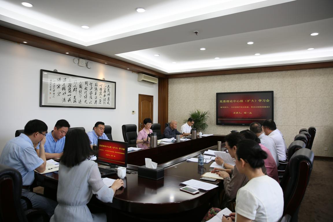 5月8日上午,sunbet申愽召开党委理论中心组(扩大)会议,专题学习宪法修正案和《监察法》。全体党委成员、有关部门负责人参加学习会,校党委书记林娟娟主持。