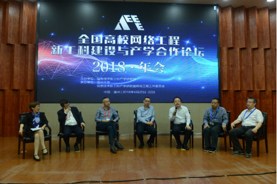 西安电子科技大学计算机学院院长暨联盟网工委副主任王泉教授、《高等工程教育研究》常务副主编余东升教授、成都信息工程大学网络空间安全学院院长李飞教授、广东工业大学计算机学院副院长滕少华教授、思博伦通信亚太服务总监沈谦以及侯胜利、施晓秋等七位专家和与会人员就新经济背景下的网络工程人才培养进行Panel研讨,现场氛围热烈。
