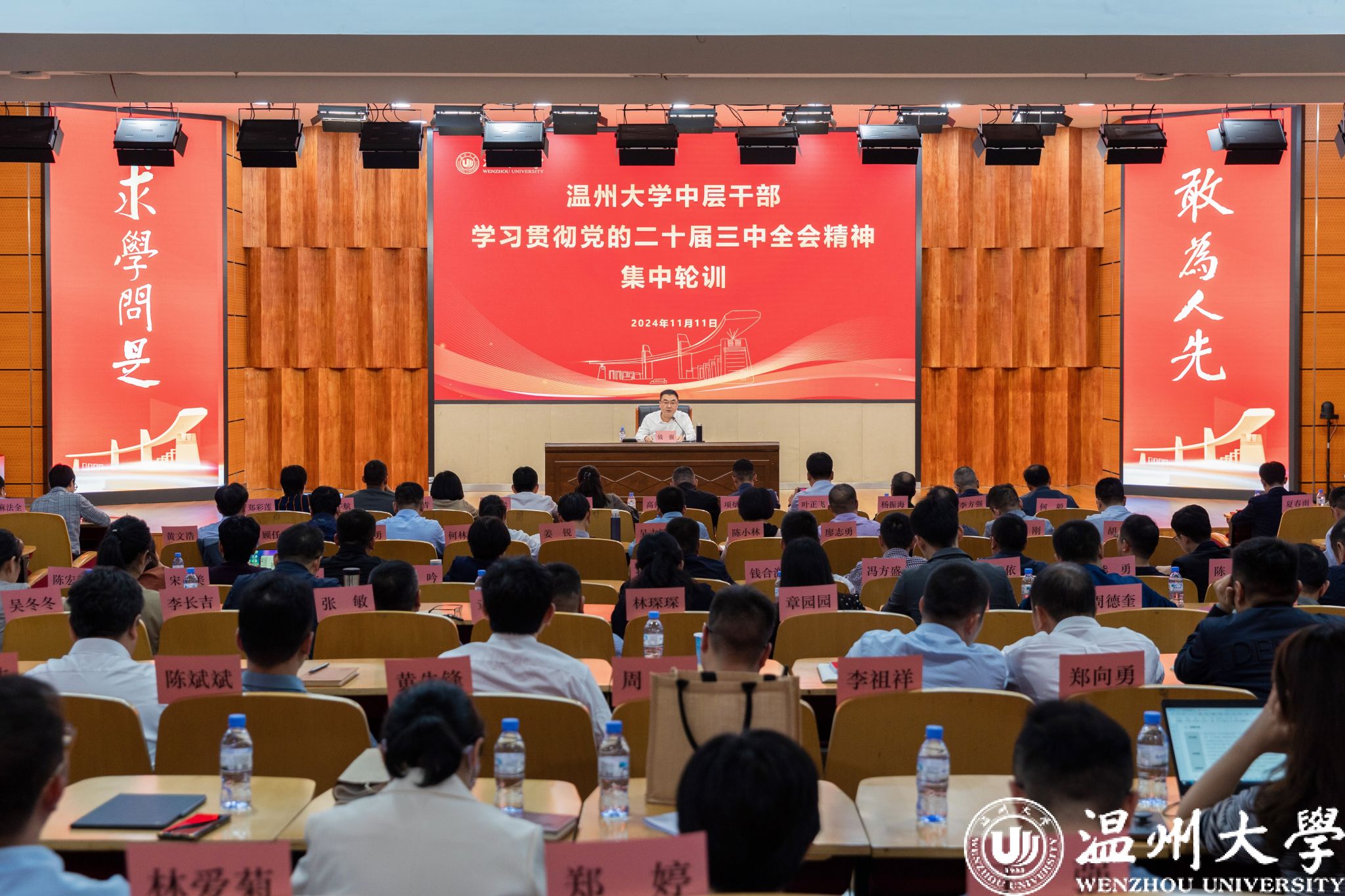 11月11日下午,sunbet申愽官网中层干部学习贯彻党的二十届三中全会精神集中轮训班在sunbet申愽岩松堂雁山厅开班。校党委书记钱强主持开班式并作专题辅导。