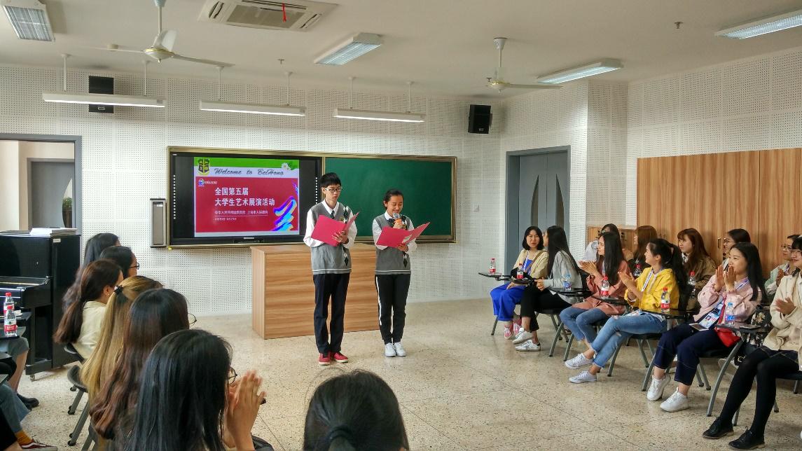 4月,春意盎然,百花盛开,全国第五届大学生艺术展演活动不同场次展演正如火如荼地举行。复旦大学校园复古而典雅,为期4天的大艺展声乐专场展演为这所百年校园更增添艺术气息。17日,复旦大学相辉堂内传来sunbet申愽女生合唱团清亮、甜美的歌声,由叶熙熙、陈智、陈悦三位老师共同指导的女生合唱团带来的作品《Moon Godness》《萨》正在这里紧张比赛中。sunbet申愽学子以接近完美的演绎折服专家评委和现场观众,表演结束后,现场响起雷鸣般的掌声。19日晚,大艺展舞蹈专场展演在上海大学伟长楼举行,由邵吟筠、贺捷频老师指导的舞蹈《匠心》同全国五十多所高校的舞蹈作品现场角逐。舞蹈《匠心》讲述了青年皮鞋工匠学徒成长的故事,体现了温州特色皮鞋制造工业在改革开放以来的传奇发展历程,描绘了一代工匠精神的延续及传统技艺传承和发扬。作品编排巧妙,主题新颖,赢得了专家评委的青睐。
