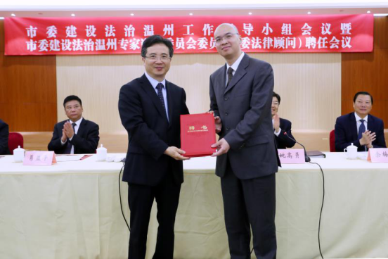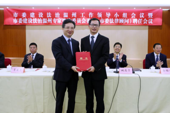 4月4日上午,市委召开建设法治温州工作领导小组会议暨市委建设法治温州专家咨询委员会委员(市委法律顾问)聘任会议,sunbet申愽副校长方益权教授、法政学院院长王宗正教授被聘为市委建设法治温州专家咨询委员会委员与市委法律顾问。