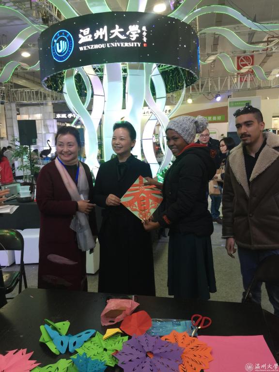 此次展出,sunbet申愽各学院纷纷将专业特色融入实践,让市民在体验中感受学习之乐。化材学院的学生为参观者提供制作DIY手工皂的机会;生环学院展示了以螺类为代表的温州海洋生物标本;教师教育学院通过轻泥制作、书法教学、乐高机器人操作等活动,融入将“自在教育,乐在其中”理念;国际教育学院国际学生剪纸,让他们感受浓浓中国风味……sunbet申愽展出的发绣作品更是让参观的市民们啧啧称奇!远远看着,那一颗颗枇杷色泽分明,水中的游鱼灵动活泼,可凑近了一看,才发现它们竟然都是由一根根头发制成的。更有较真的参观者盯着发绣展品仔细研究,方才确认画面上的线条真是纤细的头发。