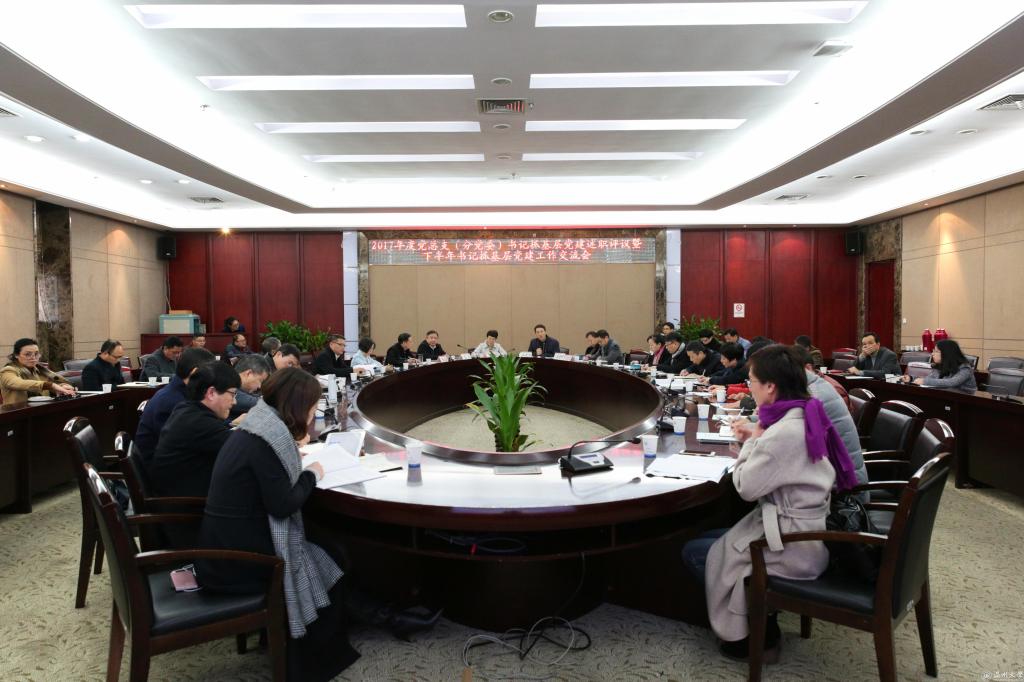 1月5日上午,sunbet申愽2017年二级党组织书记抓基层党建述职评议暨下半年书记抓基层党建工作交流会在南校岩松堂白鹿厅举行。校领导林娟娟、赵敏、吴金法、潘玉驹、郑信军出席会议,党群部门负责人、全校二级党组织书记参加会议,校党委副书记牟德刚主持。