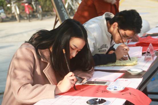 大一新生王敏这个元旦假期没有回家,但他还是起了个大早,来到溯初学区广场参加“绽放2018”迎新年活动。让她没想到的是,竟然有很多同学和她一样早早赶来参加活动。现场写对联,猜灯谜,制作中国结……丰富多彩的活动让冬日里的校园温情满满。
