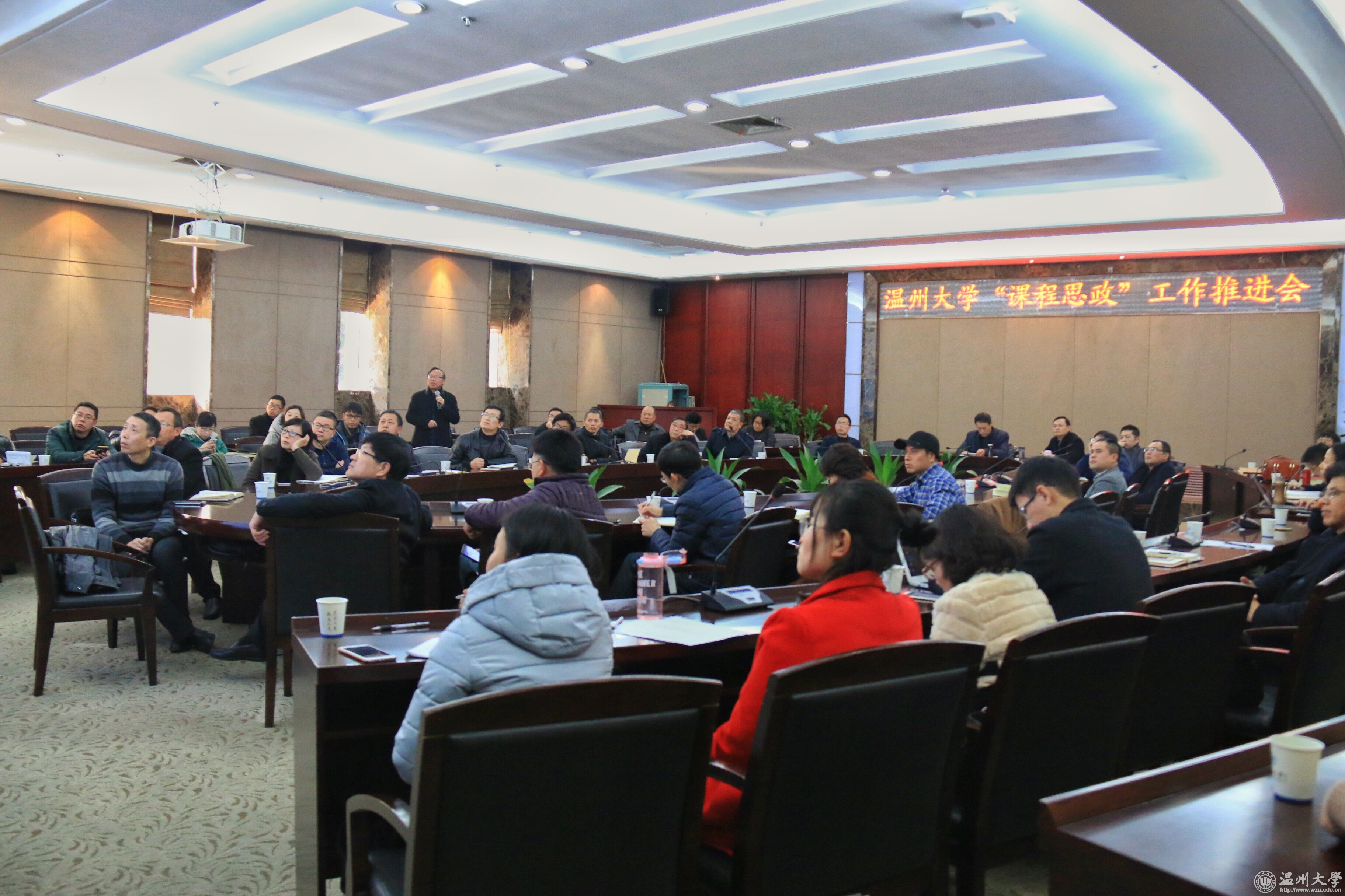 12月22日,“课程思政”工作推进会在岩松堂白鹿厅召开,校党委副书记牟德刚,相关部门、学院负责人,“课程思政”试点课程负责人参加会议,党委委员、宣传部长潘玉驹主持。 “春风大胆去梳柳,夜雨瞒人来润花”。会上,教师教育学院副院长彭小明教授作“课程思政的内涵、特点与方法”专题报告,详细叙述对“课程思政”的理解,并结合实际课程案例,论述如何将德育融入专业课程中去,对“课程思政”的实施作深入思考。 学校教学督导室主任冀桐就督导听课情况向与会人员进行反馈。教师教育学院党总支书记杨立淮、商学院周建华老师、美术与设计学院张晓剑老师、化学与材料工程学院余小春老师围绕本专业“课程思政”试点课程建设情况,提出了“师生共学、示范课程建设项目化”“教学团队和支部建设相结合”“在美学中融入中国史”“专业知识教授与社会时事、激励教育等元素紧密结合”等观点,就试点课程工作推进以来,对“课程思政”的思考和具体实践作交流。 牟德刚指出,加强“课程思政”建设,是解决高校思想政治教育存在的“孤岛”困境,思政教育与专业教学“两张皮”现象的有效途径,是对习总书记“全课程、全员育人”理念的贯彻落实,必须“要用好课堂教学这个主渠道,各门课都要守好一段渠、种好责任田,使各类课程与思想政治理论课同向同行,形成协同效应”。他进一步指出,“课程思政”其实质不是增开一门课,也不是增设一项活动,而是将高校思想政治教育融入课程教学和改革的各环节、各方面,实现立德树人润物无声。围绕“知识传授与价值引领相结合”的课程目标,强化显性思政,细化隐性思政,构建全课程育人格局。牟德刚提出,通过“课程思政”建设,要把德育的核心内容有机分解到每一门课程,充分体现每一门课程的育人功能、每一位教师的育人责任。 会议还就进一步推进学校“课程思政”工作作部署:一是要进一步提高对推进“课程思政”工作的认识,对专业老师要进一步发动,对学生要进一步宣传教育,对公共选修课等空白点要加强督导,教研室对本专业的功能定位要研究、分析和分享,避免元素重复、架空和碎片化。二是要提升教师自身的素质,提倡理工科教师多阅读人文社科类的书籍,人文类教师多阅读自然科学类书籍,思政专业类教师对“课程思政”要起到学科支柱的作用,为“课程思政”工作的实施、研究和创新提供技术支撑。三是有关单位要积极探索,加快建设有利于提升大学生综合素质的公选课、通识课,加快价值建设标准,开拓建设中国系列品牌课程,动员名师多开课,动员教师开好课。 据了解,经过一年时间的课程思政试点工作,到明年九月,学校将全面铺开“课程思政”建设。