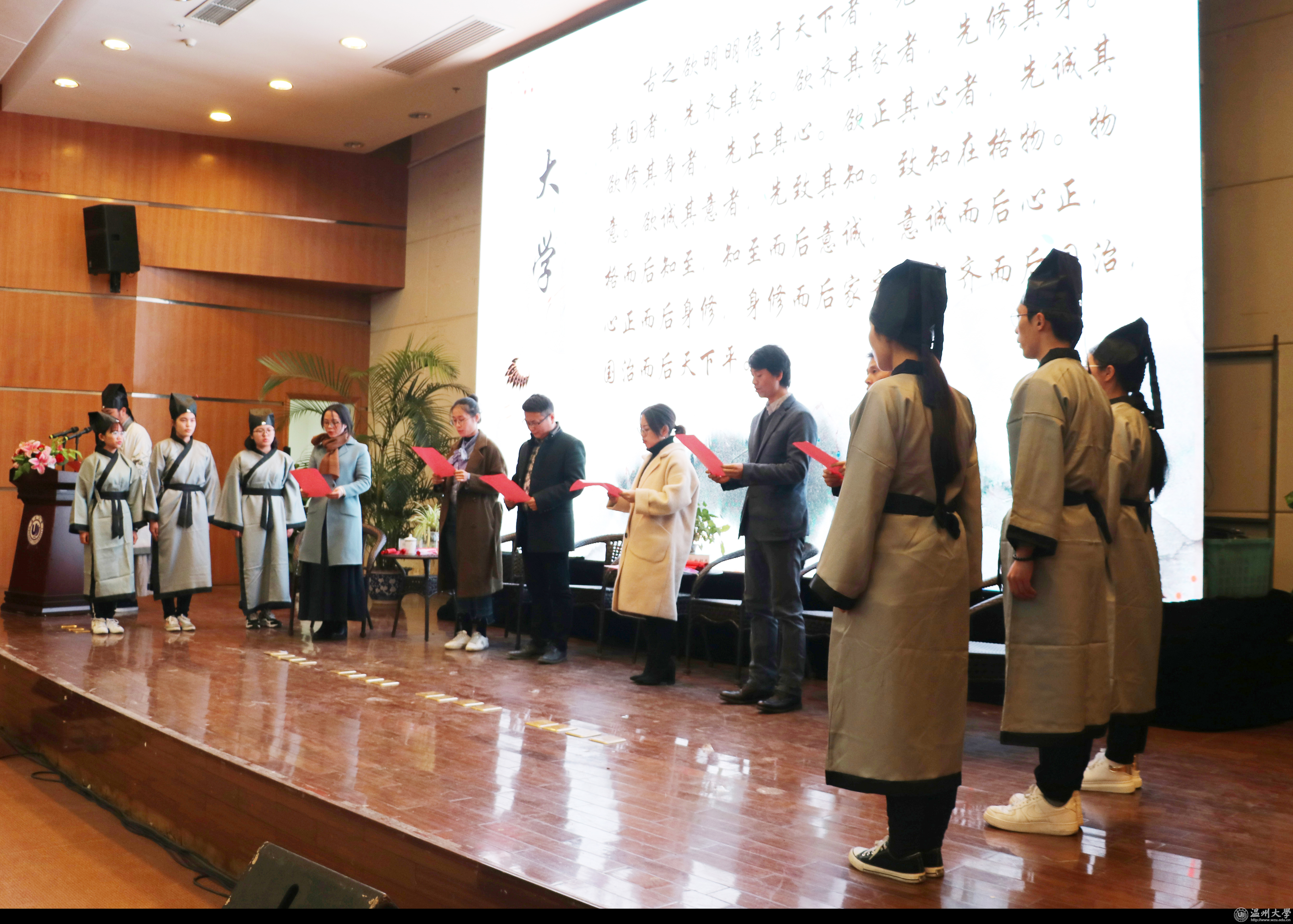 作为超豪学区2017级新生寝室导师结对采取的一种新方式,此次拜师活动将传统的拜师文化与新时代元素结合,既庄严、隆重,又富有创新性。仪式上,学生诵读拜师帖,呈递拜师帖,鞠躬奉茶,导师回礼并传授教诲。全体师生齐诵儒家经典《大学》,将拜师活动的气氛推向高潮。学生还通过视频、分享导师故事、“三行情诗赠导师”朗诵等向导师表达感激之情。 参加活动的顾晓静同学说:“古有师者传道授业解惑,今有寝室导师对学生的指导与关爱。这样一个庄严的仪式让我们和寝室导师的距离更近,情感也更深了。” 寝室导师顾任飞老师说:“拜师并非一种形式,而是一种仪式、一种约束,是文化育人的重要载体,有助于良好师生关系的形成,对导师制的实施有促进作用。” “寝室导师制是sunbet申愽官网全员育人、全方位育人的创新举措。学区作为寝室导师制的主要实施单位,一直以来都十分重视导师工作,积极为寝室导师开展工作创造条件,为学生积极参与导师工作营造氛围,并逐步构建起由引领导师、寝室导师、责任导师和朋辈导师组成的四位一体导师工作体系,在学生成长成才中发挥着重要作用。”超豪学区党委副书记李祖祥说。 同时,“寝室导师工作室(学生学业指导站)”揭牌成立。据悉,该工作室将通过导师工作沙龙、导师工作研判会等途径,致力于研究探讨寝室导师工作存在的主要问题,并提出相应对策,为寝室导师制的深化实施提供智库支持。
