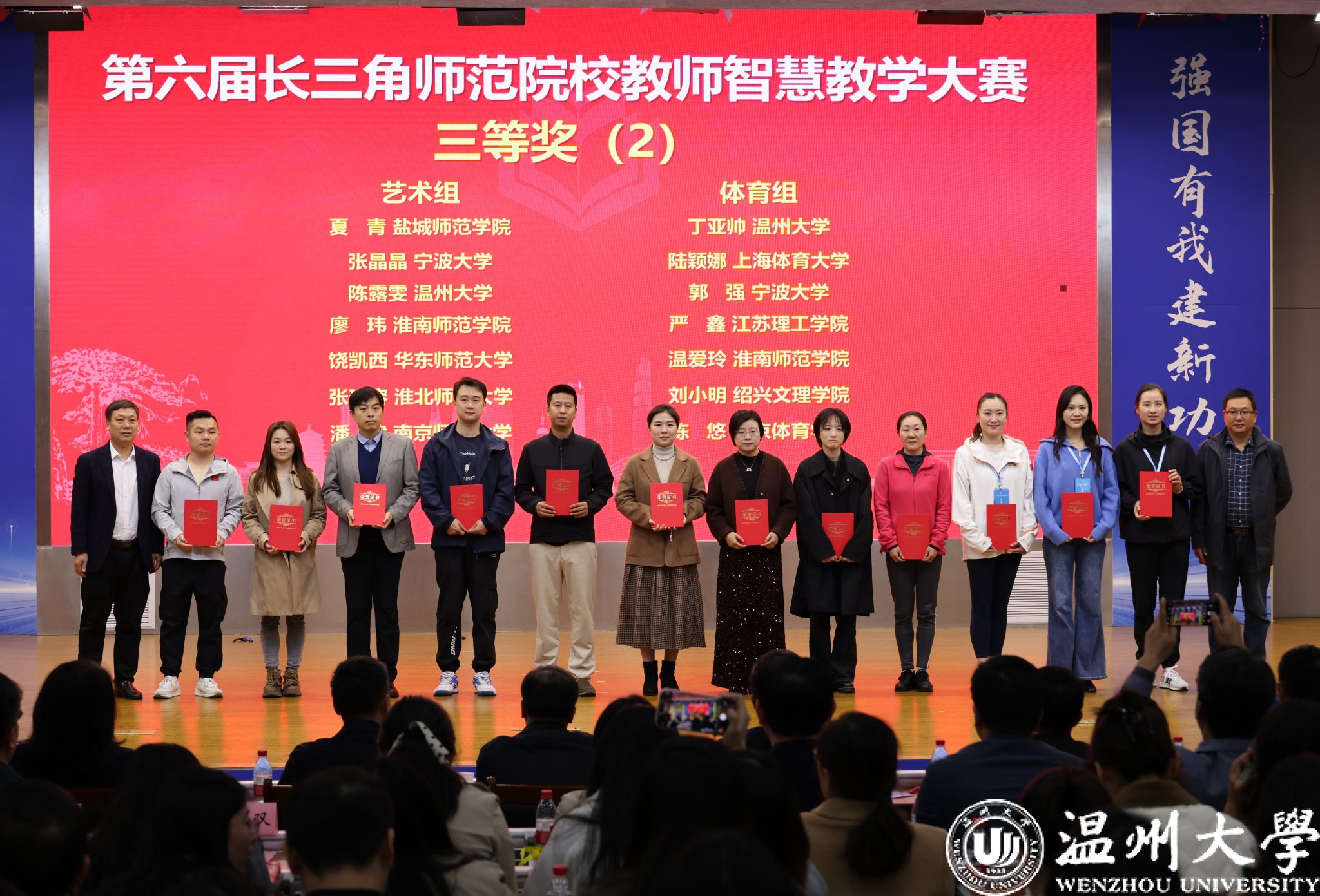 11月17日,由浙江省教育厅、安徽省教育厅、上海市教育委员会和江苏省教育厅联合举办的第六届长三角师范院校教师智慧教学大赛在安徽师范大学圆满落幕。sunbet申愽斩获五项大奖,获奖总数位列浙江省第一名!通过各省初赛,来自浙江省、江苏省、安徽省、上海市的31所高校69名教师入围决赛。经过校院两级的精心准备和反复磨课与研课,sunbet申愽入围决赛人数最多,且全部获奖,创下了该项比赛中sunbet申愽历年来的最好成绩!其中,生环学院王子铭、人文学院余琼、音乐学院李恒子老师分别获二等奖,音乐学院陈露雯、体育学院丁亚帅老师分别获三等奖。