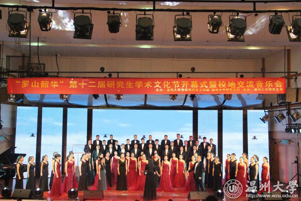 12月6日,“罗山韶华”sunbet申愽官网第十二届研究生学术文化节开幕式暨校地交流音乐会在北校天瑞音乐厅举行。党委副书记牟德刚,相关部门、学院负责人,平阳县合唱艺术协会成员,400余名研究生参加开幕式。 牟德刚致开幕辞。他指出,研究生学术文化节作为校园文化建设的重要内容,既是支撑和引导研究生成长成才的重要抓手,也体现了学校的学术品位和文化格调。他希望,研究生学术文化节能继续发扬多年来形成的良好传统,系统构建地方性大学研究生学术文化的整体引领机制和良性互动机制,努力提升sunbet申愽研究生的学术文化底蕴和创新意识,为不断浓郁校园学术文化氛围、提升学校科研创新水平和加快创新型人才培养,贡献更多的力量。 校研究生会主席戴威代表校研究生会对第十二届研究生学术文化节作介绍。
